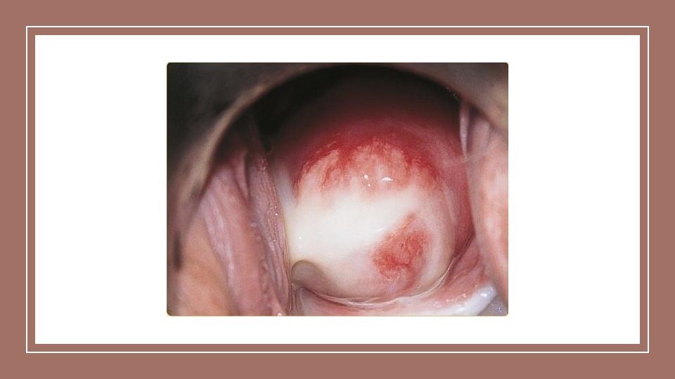 Speculum Examination : • The vaginal epithelium is frequently edematous and inflamed. • Vaginal discharge is typically frothy and green. • The erythematous cervix may demonstrate the characteristic “strawberry” appearance. • Vaginal p. H is elevated >4. 5 Testing : • Gold standard is a nucleic acid amplification test (NAAT) preferably on a vaginal or endocervical swab or on urine. • Testing is indicated in symptomatic women. • Some NAATs also detect Neisseria gonorrhoea and Chlamydia trachomatis on the sample; for these the optimal test is a vulvovaginal swab.