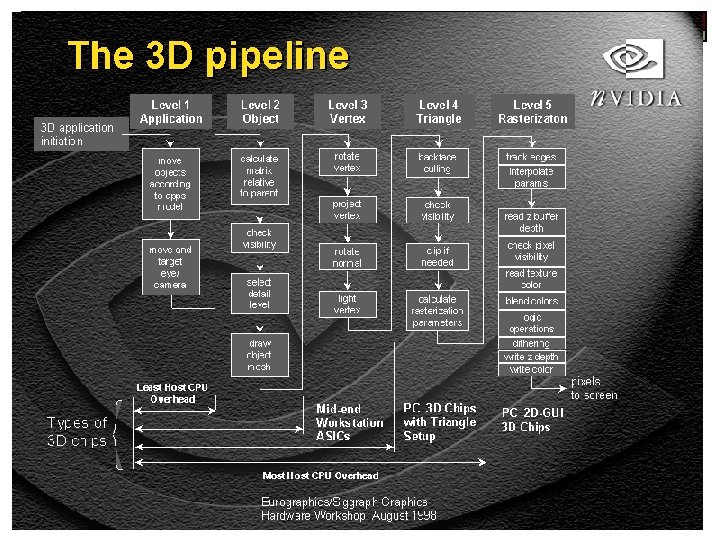 Simplified View Transform (& Lighting) o Rasterization The Data Flow: 3 D Polygons (+Colors, Lights, Normals, Texture Coordinates…etc. ) à 2 D Polygons à 2 D Pixels (I. e. , Output Images)