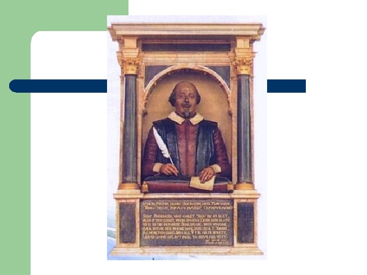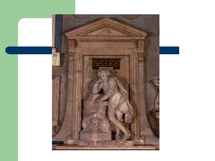 Shakespeare continued l l Children- 3 children (one set of twins) no direct descendants Place of residence: London; owned property in Stratford on Avon. Became successful actor by 1592 Between 1592 -1594; Theatres closed due to the plague so he began to write poetry, well known for poetry and drama.