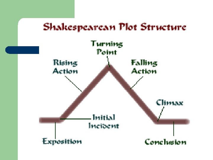 C. Drama – Unique Characteristics l l l Written to be acted or read aloud (gestures) Divided into acts and scenes for the purpose of break in action, change in time or place Contains number of minor climaxes to hold audience’s attention.
