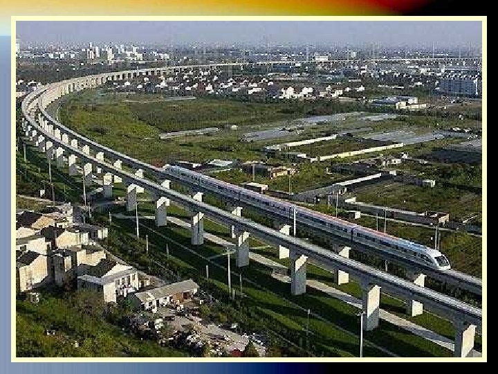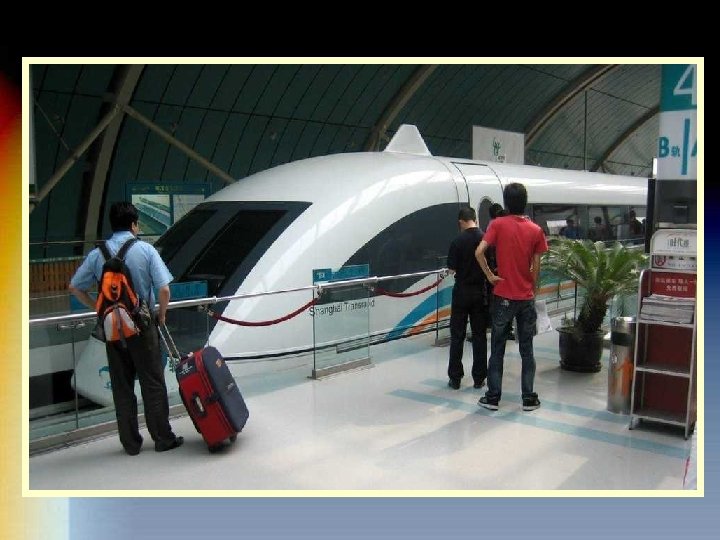 El tren Maglev de Shanghai (Tren de levitación magnética por sus siglas en inglés) Es el primer tren comercial de alta velocidad, de este tipo, en el mundo. La construcción comenzó en marzo de 2001, y entró en servicio el 1 de enero de 2004. El tren fue construido en Alemania. Puede alcanzar 350 km/h (220 mph) en 2 minutos, con una velocidad máxima en condiciones normales de funcionamiento de 431 km h (268 mph). Durante un ensayo el 12 de noviembre de 2003, el vehículo alcanzó una velocidad máxima de 501 km/h (311 mph). El tren va desde la estación de Longyang Road Pudong en Shanghai hasta el Aeropuerto Internacional de Pudong y tarda 7 minutos y 20 segundos para completar el viaje de 32 kilómetros.