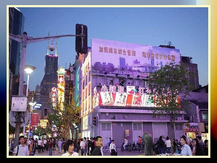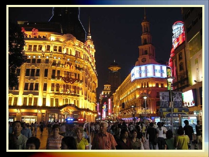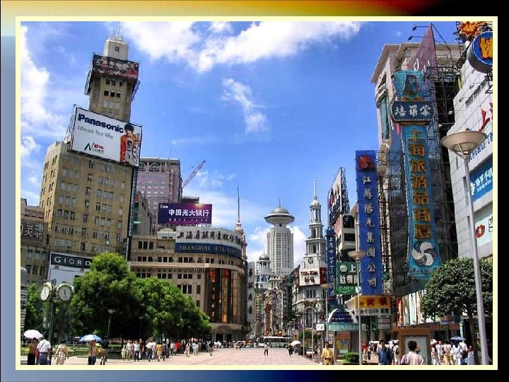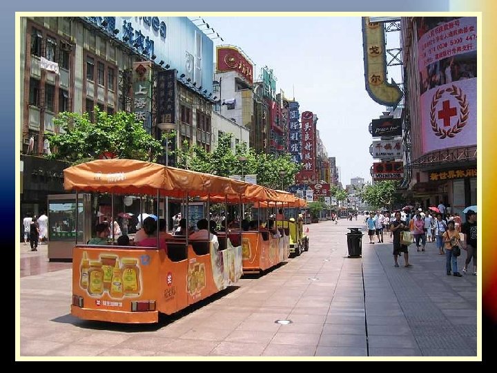 LA CALLE NANJING La calle Nanjing de Shanghai es la avenida comercial más grande del mundo. Está situada en el centro de la ciudad, de hecho atraviesa la plaza del Pueblo, y está dividida en West Nanjing Rd y East. La zona de West Nanjing es bulliciosa, llena de tráfico, rascacielos y está abarrotada de centros comerciales de lujo, con todas las firmas de moda más lujosas del mundo. East Nanjing Rd es en cambio, peatonal y un poco más tranquila, si eso se puede decir de alguna calle de Shanghai … Además de los centros comerciales también hay multitud de restaurantes y algunas cafeterías (cosa muy poco habitual en otras partes de la ciudad, ya que lo de tomar café es una cosa más bien occidental).