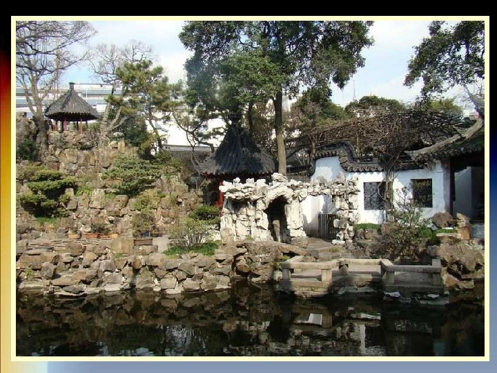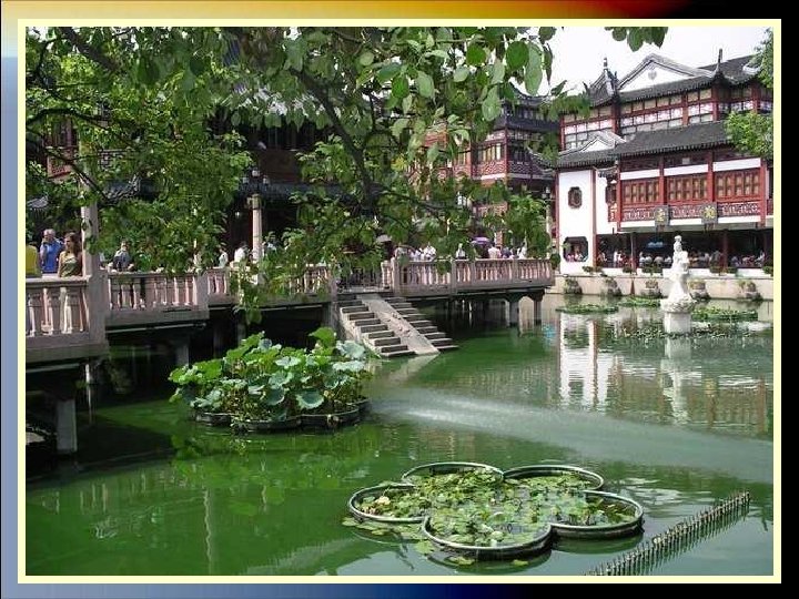 EL JARDIN YUYAN El Jardín Yuyuan de la ciudad de Shanghai, es uno de los jardines más famosos de la Repiblica popular de China. Está situado en la zona norte de la ciudad, cerca de la antigua muralla. Fue diseñado durante la Dinastía Ming, entre los años 1559 y 1577. Un funcionario, de nombre Pan Yunduan, decidió construirlo a imagen y semejanza de los jardines imperiales. El funcionario quería que sus padres, que no podían trasladarse a la capital ya que eran demasiado mayores para viajar, pudieran ver que aspecto tenía un jardín de estilo. Por eso le dio el nombre de Jardín Yuyuan (Yu significa salud y tranquilidad