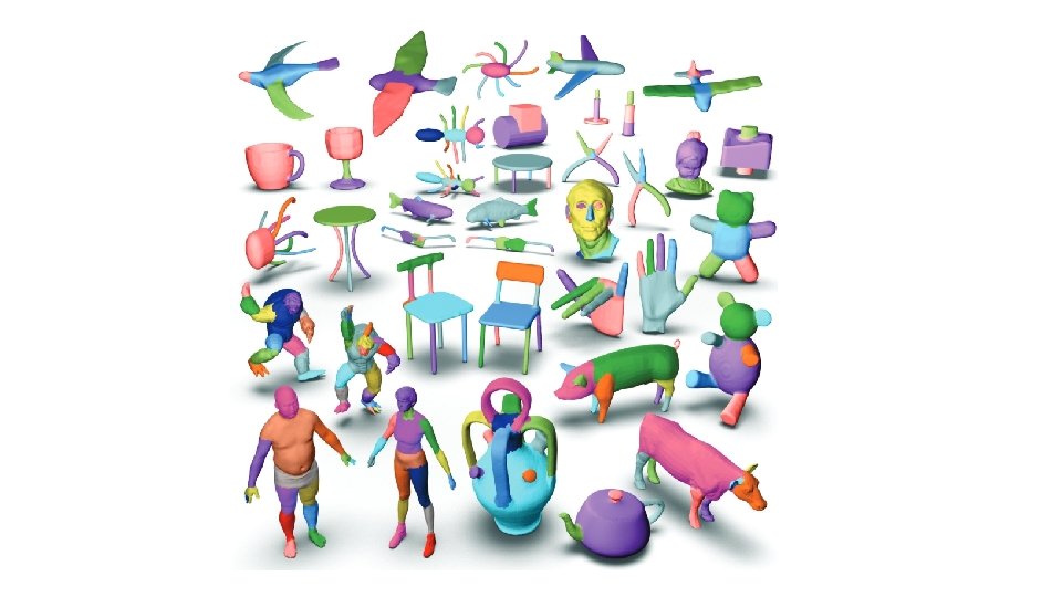 Related Work Mesh Segmentation: • (Parametric) Randomized Cuts [Golovinskiy and Funkhouser 2008] • (Non-Parametric) Concavity-Aware Fields [Au et al. 2012] Point Clouds: (Completion) Primitive Fitting [Lafarge et al. 2013] Machine Learning: (Co-, Joint, Supervised) Segmentation Convex Decomposition: Weakly convex components [Asafi 2013]