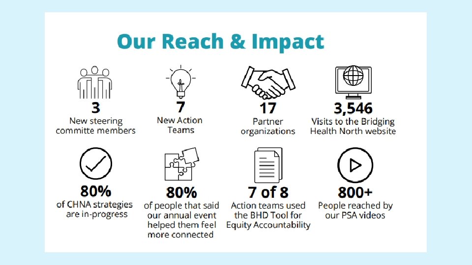 Community Partner Highlights! COVID Outreach Collaborative Partners include: ● Duluth NAACP ● University of MN Duluth ● Wilderness Health/ St. Luke’s ● Generations Health Care Initiatives ● MDH and other local funders To learn more: healthyalliancesforall@gmail. com