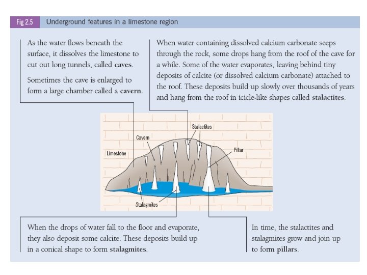 Carbonation – Karst Landscapes • Carbonation occurs in areas where bare limestone rock is exposed to the weather. • These areas are known as karst landscapes, after a limestone region called Karst in Slovenia. • An example of a Karst landscape in Ireland is the Burren in Co. Clare. • Here the soil has been worn away, leaving the bare limestone rock exposed. Carbonation has created many spectacular features, particularly underground.