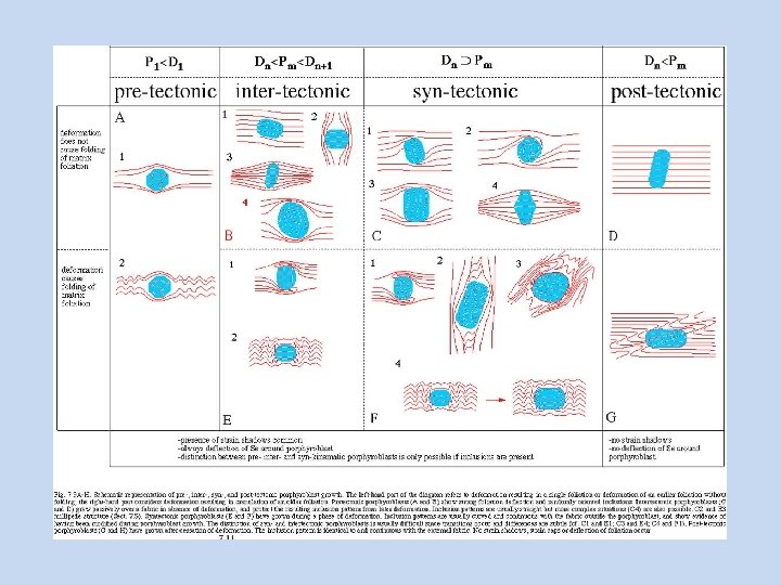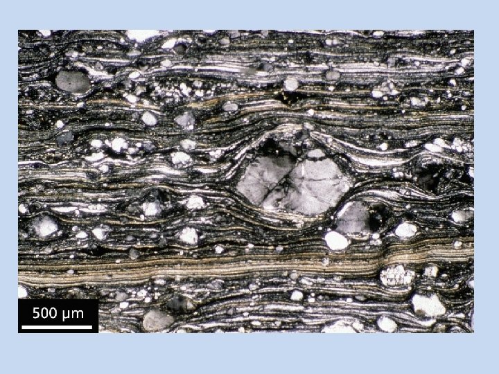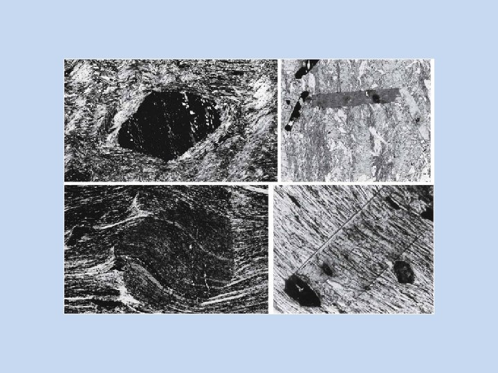 La lineazione di allungamento può essere generata anche dall’isorientazione di oggetti deformati duttilmente come fossili o clasti oppure da un fabric lineare cristallografico associato ad una deformazione intracristallina. In entrambi i casi la lineazione d’allungamento si dispone parallelamente alla direzione di massima estensione (asse X dell’ellissoide della deformazione finita, EDF). La foliazione si sviluppa anche in questo caso per l’isorientazione di minerali piatti ruotati o di neoformazione, di oggetti deformati o di un fabric planare cristallografico lungo il piano XY dell’EDF. Le zone di taglio mostrano generalmente una simmetria monoclina ovvero non c’è nessun gradiente nel fabric parallelo al piano di simmetria. La geometria delle zone di taglio duttili è raramente perfettamente tabulare molto più spesso i margini non sono paralleli ma presentano strozzature o allargamenti.