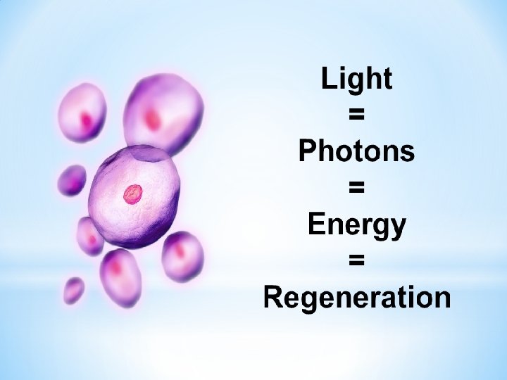 LIGHT = The Ultimate Biological Nutrient • Light donates photons to cells that need energy • Photons increase the production of ATP (150%) • Adenosine Triphosphate, or ATP, is the energy of the cell • ATP energy governs 80 -90% of the cells’ activities