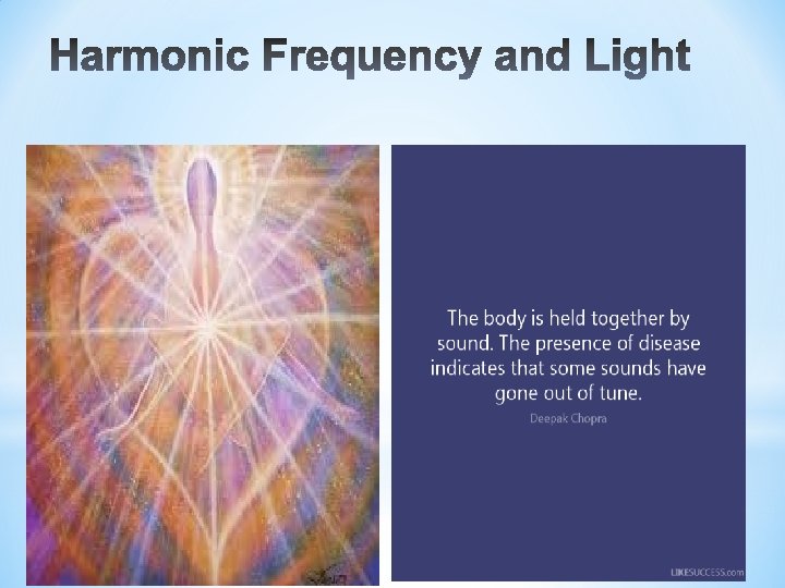 Harmonic Light: “It is unquestioned that light activation can lead to better health and functioning as well as expansion of consciousness. ” Applied to higher related fields – light has “unlimited potentials. ” Sonatherapy – Gary Robert Buchanan