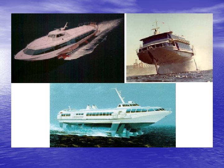 Hydrodynamic Supported Vessels • Hydrofoil configurations can be divided into two general classifications, surface piercing and submerged foil, which describe how the lifting surfaces are arranged and operate Surface-Piercing (Left) & Fully-Submerged (Right) Foil Configurations