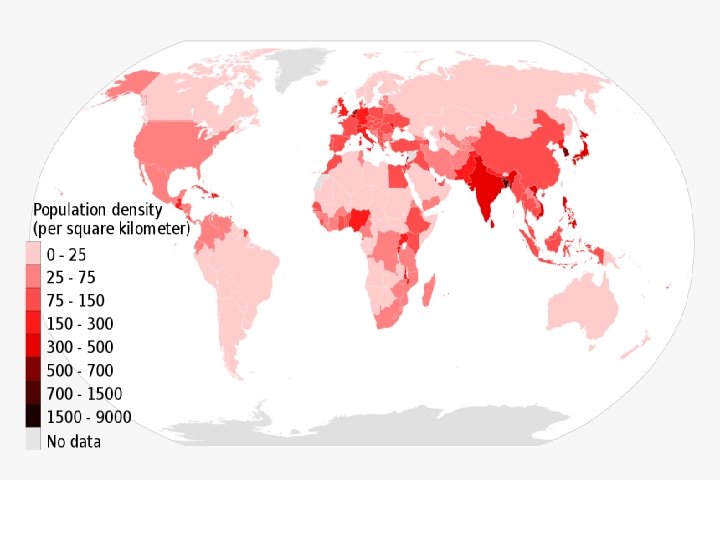 Popullsia e botës nuk është e shpërndarë në mënyrë të barabartë. Derisa disa pjesë të botës janë të dendura, të tjerat janë rrallë të banuara apo edhe të pabanuara. Dendësia e banimit varet nga kushtet natyrore ( relievi, klima, ujërat, tokat, bota bimore dhe shtazore etj. ) dhe kushtet shoqërore-ekonomike ( shtimi natyror, migrimet, zhvillimi ekonomik etj. ) Dendësia e banimit shërben për të treguar se sa banorë jetojnë në një kilometër katror ( banorë / km² ). Llogaritet duke pjesëtuar numrin e popullsisë me sipërfaqen e ndonjë shteti, regjioni apo vendi. Nrpop. Dpop. = -------Sipërfaqja 1 800 000 Kosova --------- = 165 b/km² 10 887