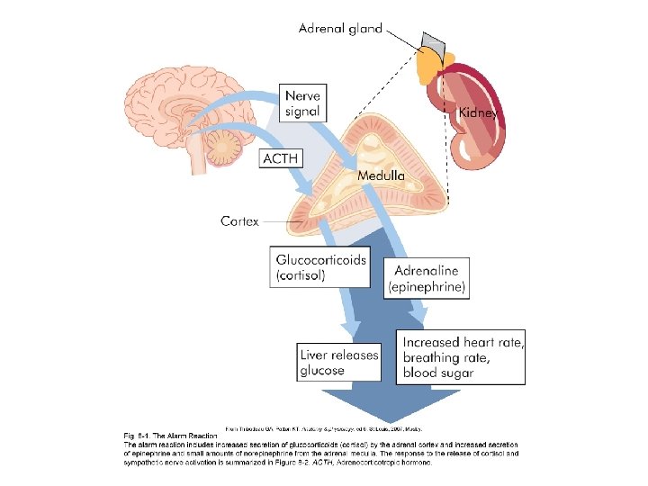 NON- PROGRESSIVE STAGE (COMPENSATORY) Autonomic Nervous System “presso receptors” in the carotids and aortic arch sense a falling BP. Signals are sent (from hypoth) to adrenal medulla in order to release norepinephrine & epinephrine. Signals are sent (from hypoth) to adrenal cortex to release cortisol. .