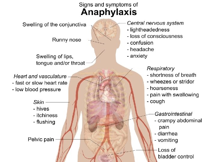 • SHOKU HEMORAGJIK: anemi • SHOKU TOKSIKO-INFEKSIOZ: temperature te larte dhe lekura mund te jete e nxehte • SHOKU ANAFLAKTIK: elemente urtikarial ne lekure, prurit te theksuar, turbullime digestive, bronkospazme