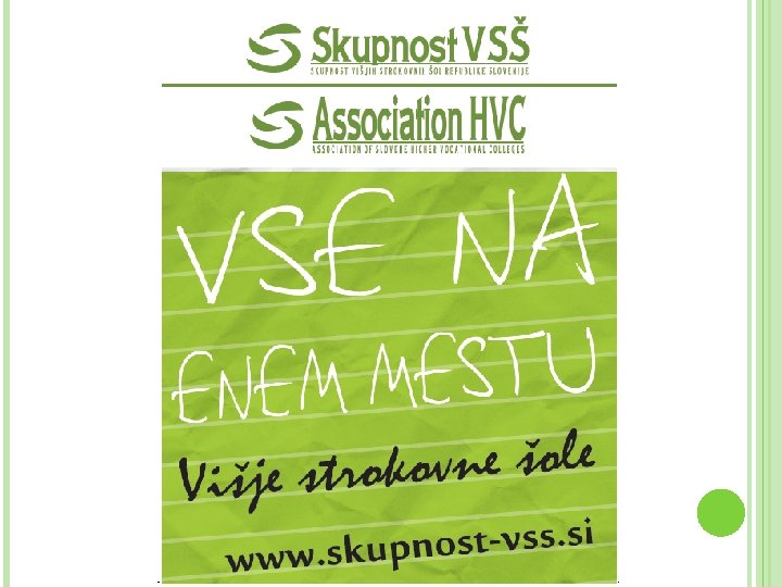 ASSOCIATION HVC Association of SCHE institutions in Slovenia (membership is voluntary) 45 SCHE member institutions (92% SCHE institutions and 99% SCHE students) 27 public and 18 private Present in 33 locations around Slovenia