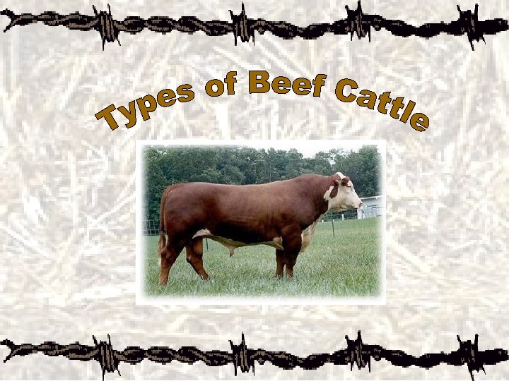 • English Breed, came from Herefordshire, England • Medium to dark red with white faces, crests and white underline, feet and tail • Foraging ability and hardiness, mothering ability 1, 800 -2, 100 lbs.