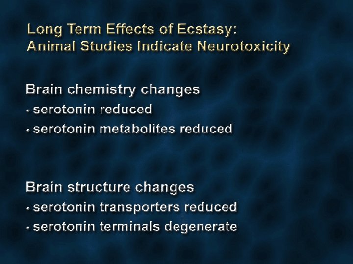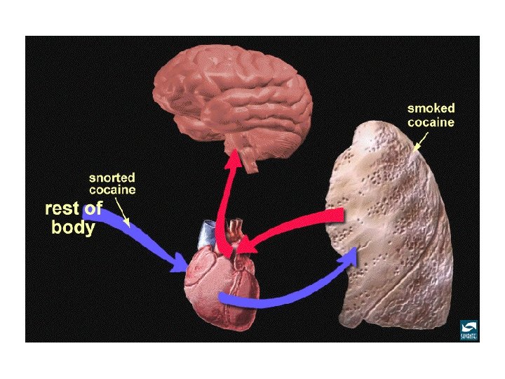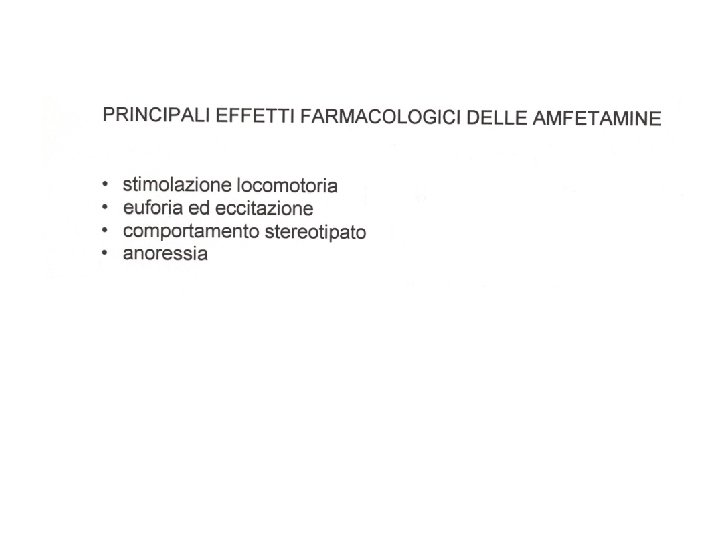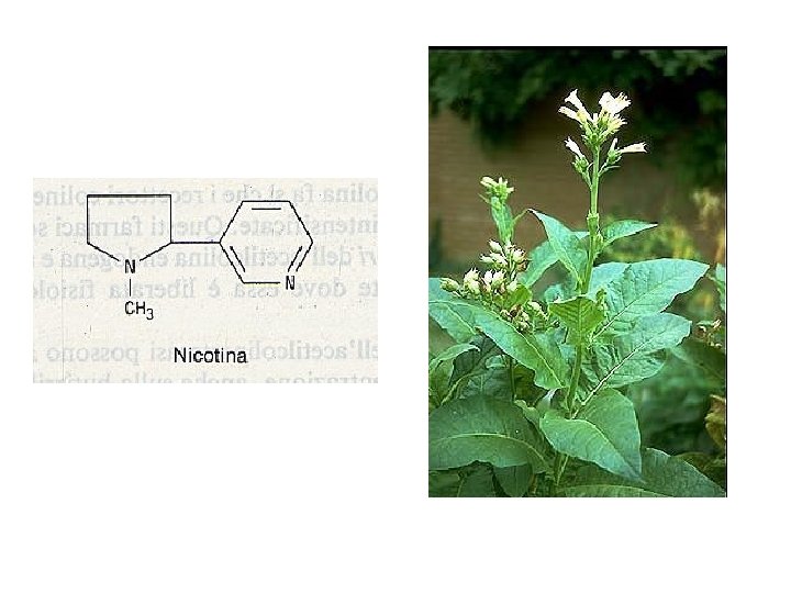 EFFETTI CONNESSI CON L’USO DI NICOTINA Azione psicostimolante centrale Effetti centrali: capogiri, vertigini; nausea, vomito Azioni periferiche: aumento pressorio, tachicardia Riduzione del peso corporeo liberazione di dopamina (e 5 HT? ) liberazione periferica di noradrenalina