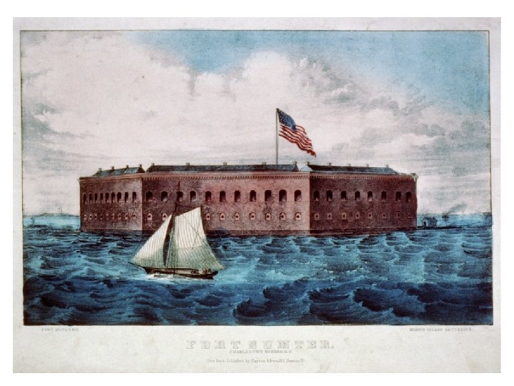 4. April 9, 1861 – Ship leaves New York for Fort Sumter carrying supplies a. Seen by South Carolina as an act of aggression; “reinforcement” 5. April 12, 1861 - Fort Sumter bombarded by more than 70 Confederate canon a. Abner Doubleday: "The crashing of the shot, the bursting of the shells, the falling of the walls, and the roar of the flames, made a pandemonium of the fort. ” b. Anderson’s garrison held for 34 hours until 2: 30 p. m. on April 13, when he surrendered. c. Anderson’s men allowed to leave the fort peacefully d. No loss of life during the bombardment, but the fort was heavily damaged i. ironically a 100 gun salute was ordered, one exploded killing one man and severely injuring another