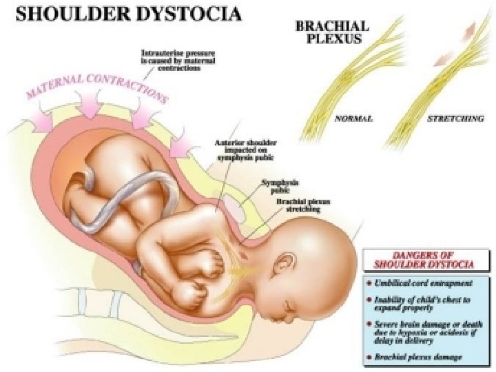 Pathophysiology § Size discrepancy between fetal shoulders and maternal pelvic inlet § Macrosomia § Large chest: BPD § Absence of truncal rotation § Fetal shoulders remain A-P or descent simultaneously