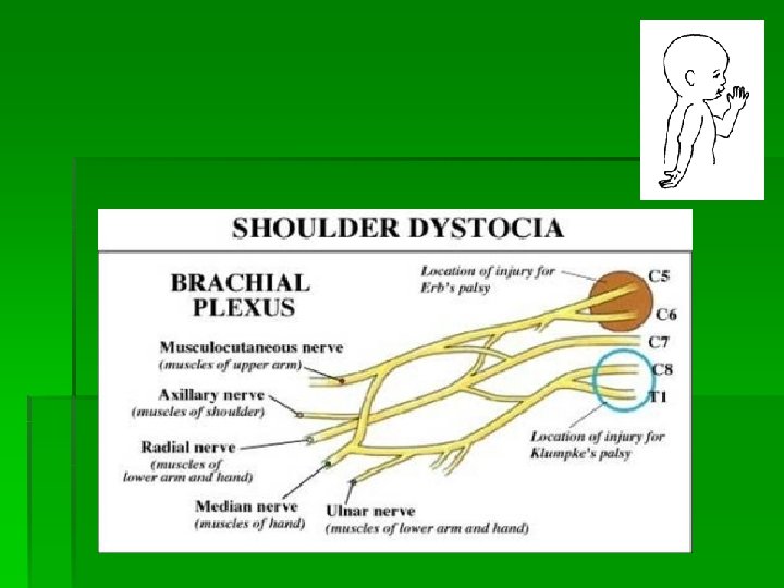 Risk Factors § Antepartum § Macrosomia (>4500 g) § DM/GDM (increases overall risk by 70%) § Multiparity § Intrapartum § Prolonged deceleration phase of labor § Prolonged 2 nd stage § Protracted descent § Operative delivery (vacuum>forceps)