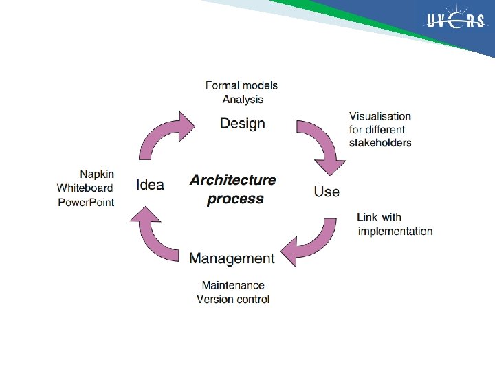 � Proses arsitektur terdiri dari langkah 2 yang membawa ide awal melalui tahapan perancangan dan implementasi menjadi sebuah sistem yang operasinal, dan akhirnya mengubah serta menggantikan sistem ini. � Dalam semua tahapan proses arsitektur, komunikasi yang jelas dengan dan antara stakeholder menjadi penting.