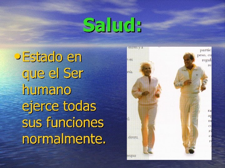 Para definir lo anterior: Veamos primero lo que es SALUD.