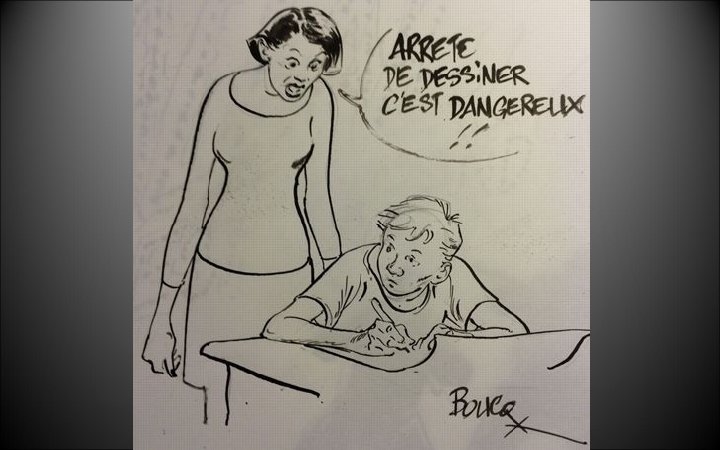 Tu m’expliquerais pourquoi Elsa, pourquoi ils ont fait ça ? C’est un monde en noir et blanc ? C’est peut-être ça le pire, je ne sais pas comment colorier (Dessin de Loïc Sécheresse)