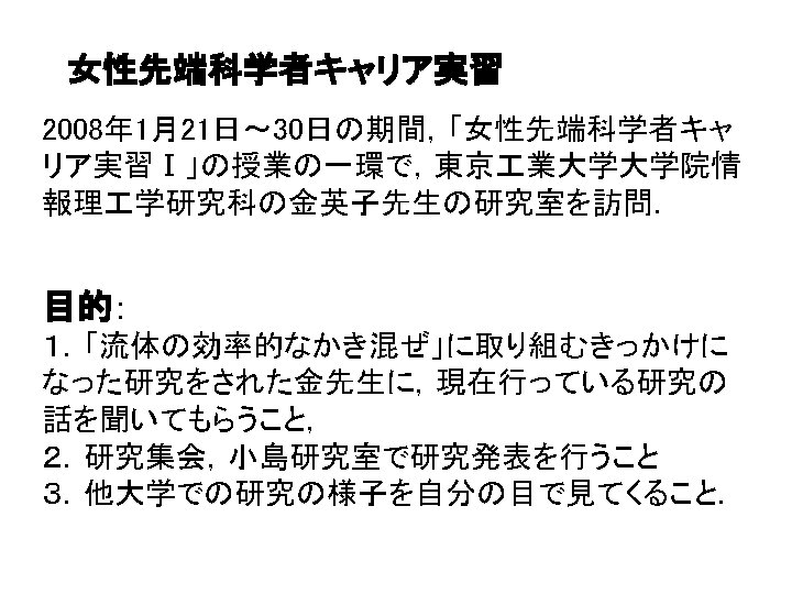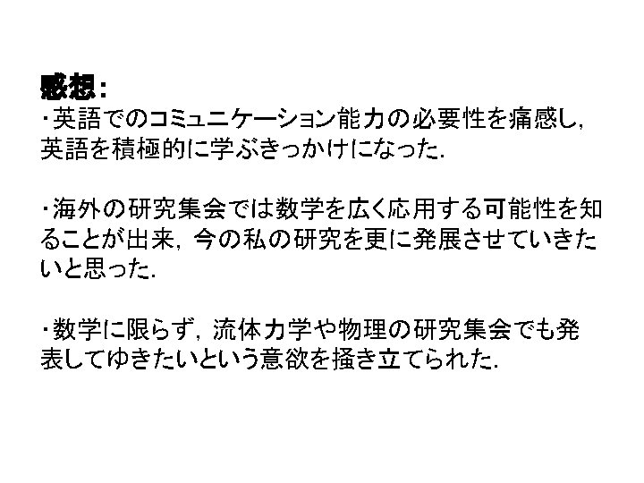 海外科学英語実習 SIAM Conference参加に関する報告 2007年 5月28日~ 6月1日にアメリカ合衆国ユタ州ソルトレイクで 開催されたSIAM (Society for Industrial and Applied Mathematics) の研究集会Conference on Applications of Dynamical Systemsに参加. ソルトレイク(2002年冬季オリンピック会場)