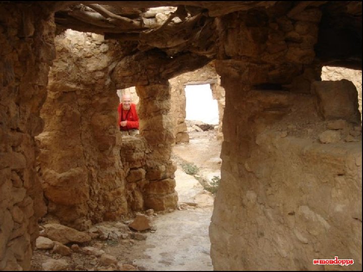 SIAMO ARRIVATI AL GRANAIO DI QASR AL-HAJ IN QUESTO GRANAIO BERBERO SPICCANO GRANDI ANFORE E UN POZZO. IL VASELLAME E’ DISSEMINATO UN PO’ OVUNQUE. NEL CORRIDOIO DI ACCESSO ( QUI NELLA FOTO ) SI TROVANO CIOTOLE E OGGETTI IN LEGNO.
