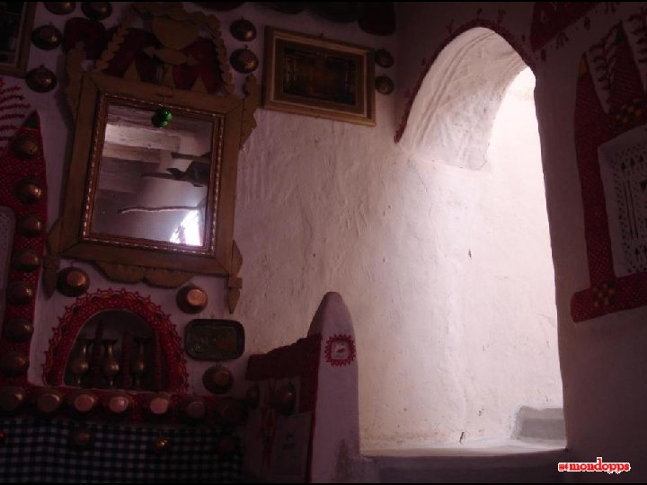 • • LE CASE TRADIZIONALI SONO SU TRE PIANI. • AL PRIMO PIANO LA SALA SOGGIORNO, TAMANHAT , CHE E’ LA STANZA PRINCIPALE : QUI SI MANGIA , SI RIUNISCE LA FAMIGLIA E VENGONO ACCOLTI GLI OSPITI. • C’E’ LA CAMERA NUZIALE CHE SI CHIAMA , L’ALCOBHA • LA CUCINA SI TROVA SOPRA PROPRIO PERCHE’ DA LI C’E’ IL TERRAZZO DOVE VI E’ UNA VIA DI USCITA ED ENTRATA D’ARIA PER GLI ODORI. • LE CASE ORIGINARIAMENTE NON AVEVANO L’ELETTRICITA’. • NON HANNO FINESTRE MA UNA FINESTRELLA DA DOVE ENTRA ARIA E LUCE. LE CASE SONO SOVRABBONDANTI DI SPECCHI E VETRI E LA LUCE CHE ENTRA DALLA FINESTRELLA RIFLETTE SU SPECCHI E VETRI CHE MOLTIPLICANO I GIOCHI DI LUCE. • GLI INFISSI SONO COLORATI DI ROSSO E DI GIALLO; CUSCINI E TAPPETI SONO SPARSI IN OGNI ANGOLO DELLE STANZE
