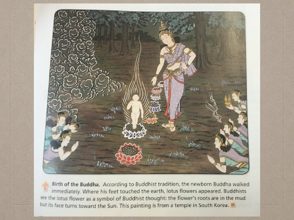 THE EARLY LIFE OF BUDDHA • Buddha’s birth was “miraculous” as he descended from heaven and entered his mother’s womb in the form of a white elephant ~ a symbol of purity • His mother died a week after giving birth and he was raised by his aunt • After he was born, legend has it he took 7 steps and said “this is my last birth” • A wise man suggested he may become an important figure or leader