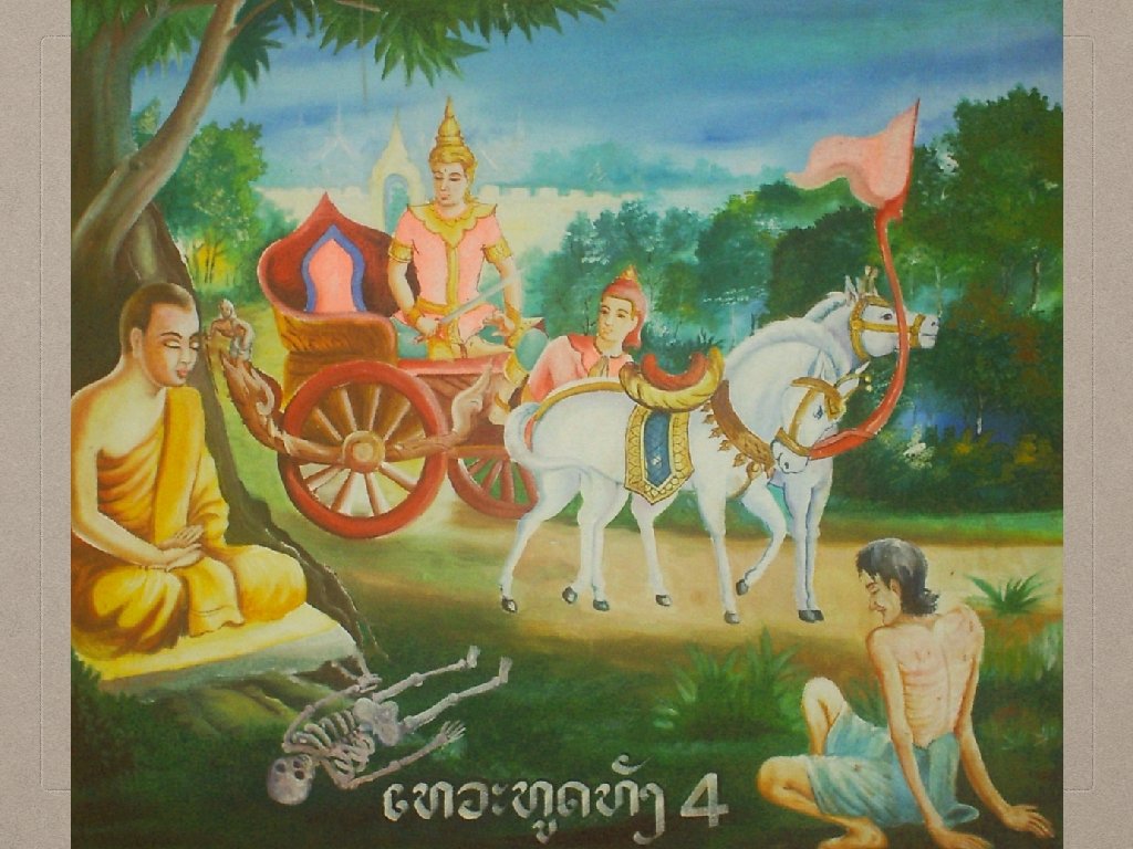 LIFE OF BUDDHA • His father wanted him to take over his rule and become a King. . he was not happy that he may become a religious figure • He lived a quiet and pleasant life until he was 29 and witnessed the FOUR SIGHTS 1) Old man 2) Sick man 3) Corpse 4) Ascetic Hindu monk • What does Ascetic mean? ? ?