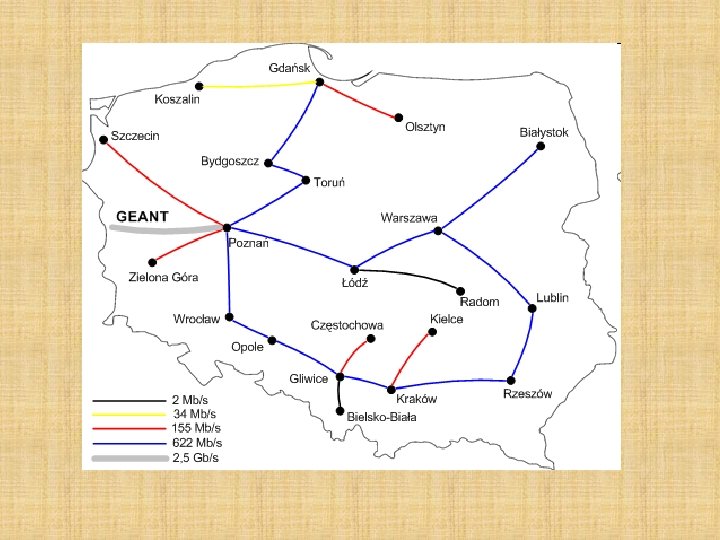 Połączenia Przyłączenie komputera do Internetu możliwe jest w następujący sposób: połączenie kablem z dostawcą Internetu – linia dzierżawiona; połączenie to odbywa się za pomocą routera, połączenie takie umożliwia szybki transfer danych w postaci sygnałów cyfrowych analogowe połączenie telefoniczne– zwykła linia telefoniczna; połączenie wymaga zastosowania modemu telefonicznego przyłączonego do linii telefonicznej, w tym przypadku transmisja sygnałów odbywa się w postaci ciągłej fali elektrycznej, cyfrowe połączenie telefoniczne– linia telefonii cyfrowej ISDN; połączenie to odbywa się za pomocą routera lub modemu, połączenie takie umożliwia szybki transfer danych w postaci sygnałów cyfrowych cyfrowe połączenie– Stały Dostęp do Internetu (dawniej: Szybki) SDI (technologia HIS); połączenie to odbywa się za pomocą routera lub modemu, połączenie takie umożliwia szybki transfer danych w postaci sygnałów cyfrowych połączenie radiowe - połączenie wymaga zastosowania modemu radiowego, sygnał przekazywany jest jako fala radiowa, połączenie kablem telewizji kablowej.