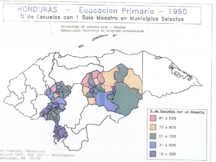 • Falta de conceptos y mecanismos que apoyen el seguimiento y la evaluación y los análisis discrepantes. – Esto se da a nivel organizacional e individual. – El seguimiento y la evaluación del desarrollo del sistema y la comparación de su desempeño entre unidades es un concepto relativamente reciente en toda la región. – Esto es el resultado de un cambio reciente de los ministerios de educación, pasando de enfatizar acceso, mantenimiento y control a enfocarse en la calidad, el desempeño y el desarrollo. • Las metas y trabajo de los ministerios fueron muy distintos en el pasado. Las regulaciones, estructural organizacionales y procesos operativos en muchos de los países estaban diseñados para alcanzar objetivos muy diferentes de los que se esperan hoy en día.