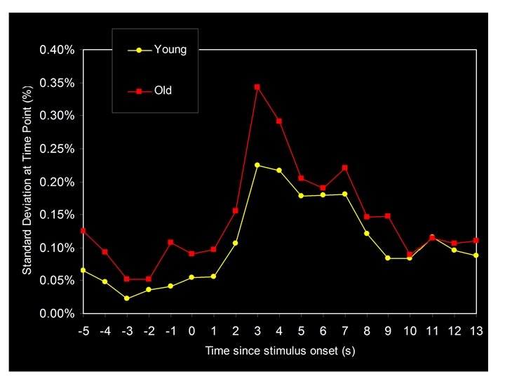 Number of Activated Voxels Effects of Signal-Noise Ratio on extent of activation: Simulation Data SNR = 1. 00 SNR = 0. 52 (Young) SNR = 0. 35 (Old) SNR = 0. 25 SNR = 0. 10 Number of Trials Averaged