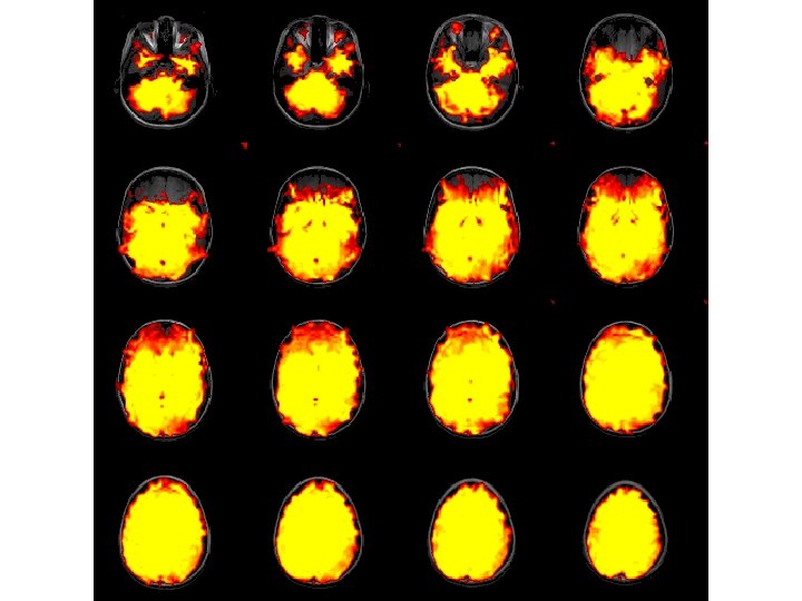 What are typical SNRs for f. MRI data? • Signal amplitude – MR units: 5 -10 units (baseline: ~700) – Percent signal change: 0. 5 -2% • Noise amplitude – MR units: 10 -50 – Percent signal change: 0. 5 -5% • SNR range – Total range: 0. 1 to 4. 0 – Typical: 0. 2 – 0. 5