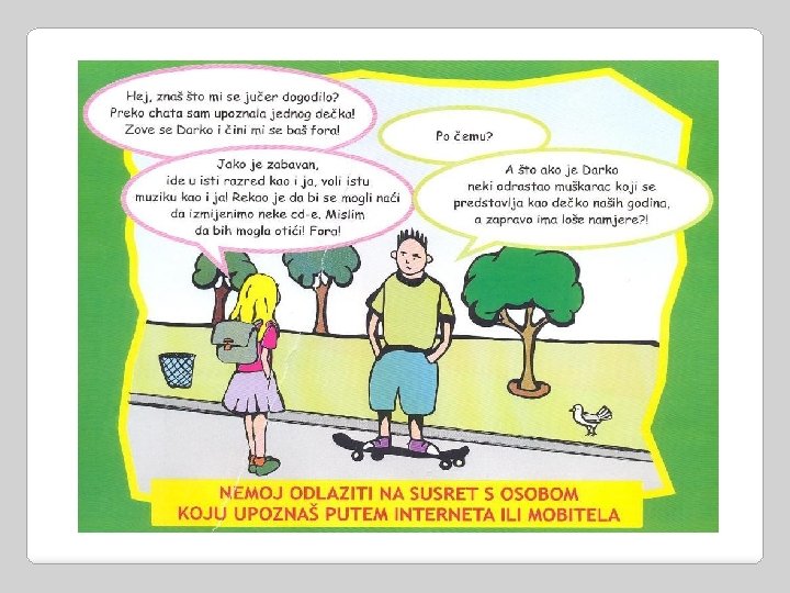 Što obavezno trebaš učiniti prije susreta s nepoznatom osobom? A Povesti roditelje ili nekog starijeg sa sobom B Kupiti poklon C Povesti prijateljicu ili prijetelja sa sobom