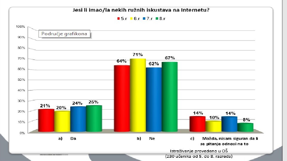 Nedostaci Interneta - rizici PRETRAŽIVANJE SADRŽAJA nasilni sadržaji poticanja mržnje dezinformacijski sadržaji online kockanje i klađenje pornografski sadržaji ONLINE KOMUNIKACIJA online predatori maltretiranje, zastrašivanje i zlostavljanje djeteta (cyber bullyng)