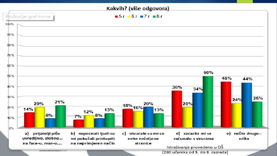 Savjeti za učenike 4. Ako vam netko šalje uznemirujuće, prijeteće ili prostačke poruke recite roditeljima ili nastavniku u kojeg imate povjerenja 5. Niste vi krivi zbog toga što vam prijete i vrijeđaju vas 6. Okanite se "to se meni neće dogoditi" pristupa 7. Ne otkrivajte svoje internet lozinke nikome
