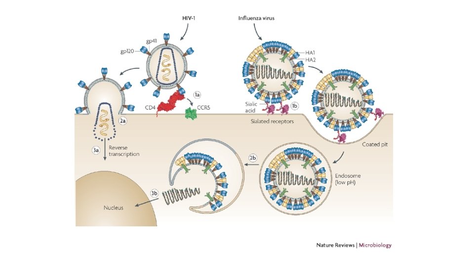 Reseptor Virus • Beberapa virus memerlukan reseptor tambahan (koreseptor) untuk dapat masuk ke dalam sel • Contohnya virus HIV mempunyai reseptor CD 4 dan koreseptor CCR 5 • Reseptor virus juga berperan dalam tropisme virus dan jenis inang yang dapat diinfeksi oleh virus