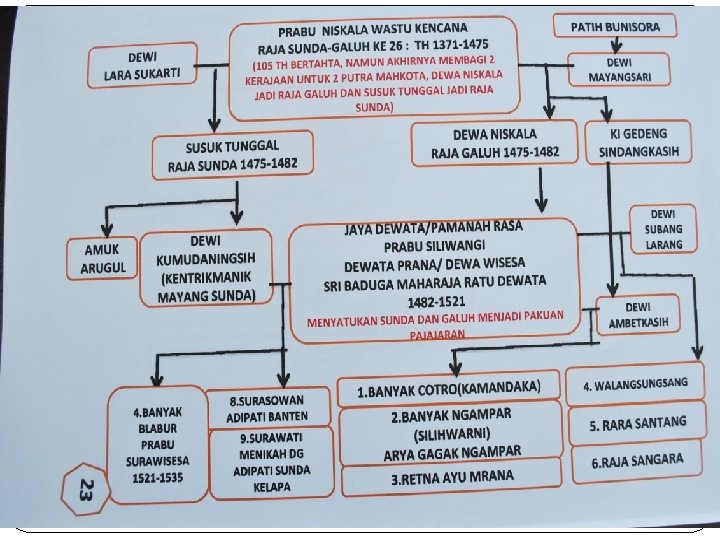 7 Kait Siwur Prabu Lingga Wesi 6 Udeg-Udeg Prabu Susuk Tunggal 5 Janggaware Prabu Banyak Larang 4 ng Bao Prabu Banyak Wangi 3 Uyut Prabu Lingga Buana 2 Aki/Kakek Prabu Niskala Wastu Kancana 1 Bapak Prabu Anggalarang/Prabu Dewa Niskala Prabu Jaya Dewata/Sri Baduga Maharaja