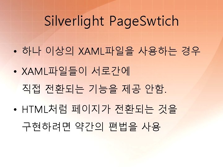 Silverlight Mutil Page App xaml Swticher Page xaml Slides: 16 Download presentation Silverlight Mutil. Page 고석현 페이지전환의 구조 App. xaml Swticher. Page. xaml …. xaml Page 2. xaml …. xaml
