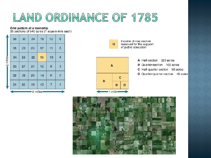 � Land Ordinance �Orderly division of land into sections and townships �One section set aside to finance school system �Land to sell for minimum of $1 gold per acre � Speculation �Manasseh Cutler and the Ohio Company
