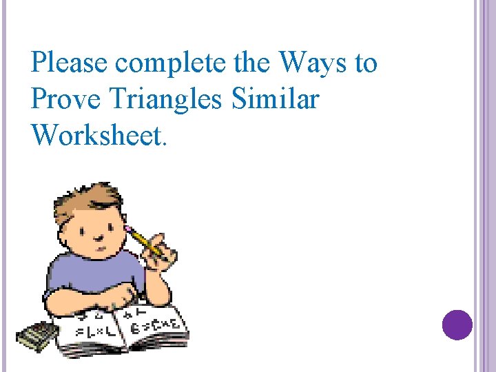 Please complete the Ways to Prove Triangles Similar Worksheet.