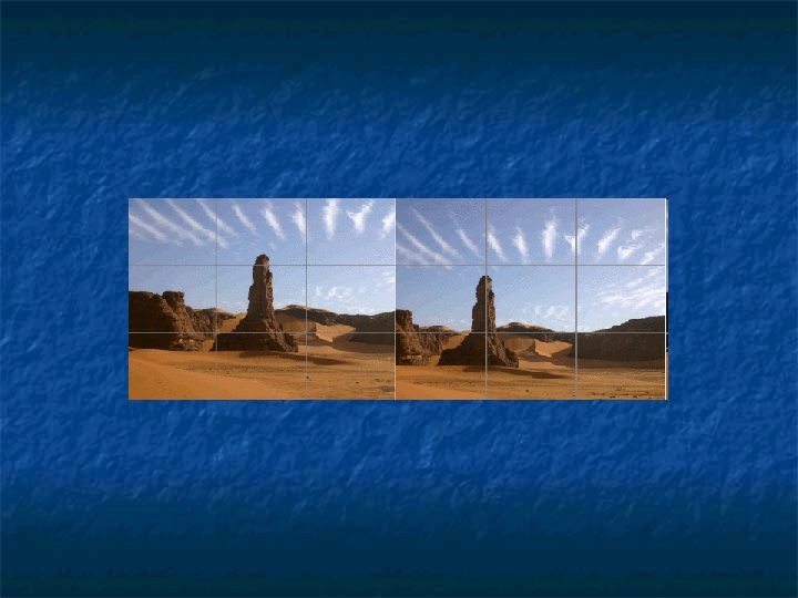Rule of thirds n Definition: Important elements should be at the intersection of two equally spaced horizontal and vertical lines
