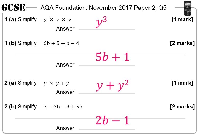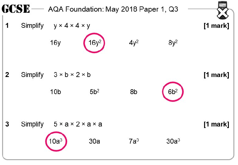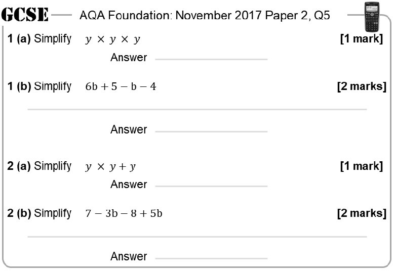 Simplifying Expressions Multiplying Foundation GCSE Questions AQA These