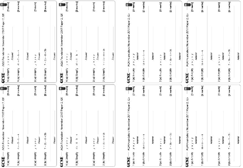 Simplifying Expressions – Multiplying – Foundation – GCSE Questions – AQA These questions are the same format as previous GCSE exams. COPY means they use the exact same numbers as the original GCSE question. Otherwise, they are clone questions using different numbers. The worksheets are provided in 2 sizes.