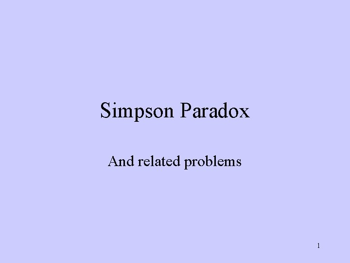 Simpson Paradox And related problems 1 Simpson Paradox