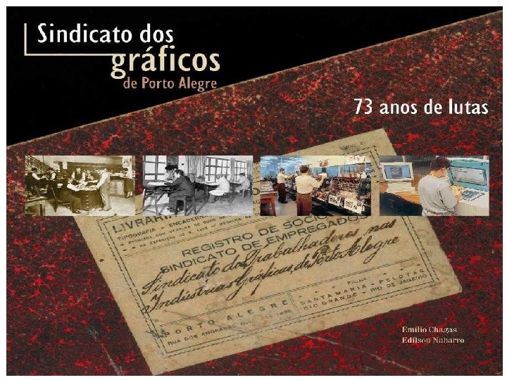 Trabalhadores, os construtores da história. É importante conhecer a história. O seu conhecimento nos permite compreender muitos dos fatores que condicionam a sociedade em que vivemos. Mas a história não é só o relato dos feitos de homens que se destacaram no exercício de cargos públicos, civis ou militares, que se tenham envolvido em fatos amplamente noticiados e documentados. A história é também, e para nós, sobretudo, o resultado da atuação cotidiana dos trabalhadores, que efetivamente constroem a sociedade. Foi partindo desse entendimento que resolvemos pesquisar e registrar a história dos trabalhadores vinculados ao Sindicato dos Gráficos de Porto Alegre, cientes de que nossa categoria tem dado ao longo dos últimos 70 anos, e talvez mesmo antes disso, uma bela contribuição para a construção de uma sociedade mais justa, humana e fraterna. Mais do que tudo, nos convence da absoluta necessidade desse registro, eis que a luta dos trabalhadores gráficos, de sempre, não pertence apenas a eles, ou a nós, gráficos de hoje. Essa luta e essa vida pertence a toda classe trabalhadora, está aqui contada e tem o objetivo de fazer com que não nos esqueçamos da necessidade de que ela continue. Nós, os trabalhadores gráficos, temos um compromisso com todos que vieram antes de nós, e com todos os que nos sucederão. Sabemos também que essa é uma história incompleta, que não foi possível resgatar tudo o quanto foi importante na vida de nossa categoria. Mas, como a luta e a vida dos trabalhadores gráficos, essa é também uma obra aberta. Que seja um primeiro registro, para incentivar a vinda a público de mais histórias. Gestão 1999/2002