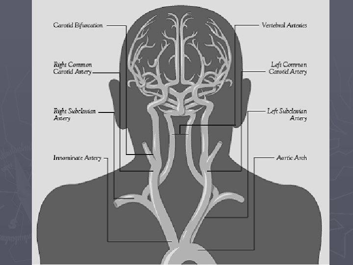 Arterias vertebrales ► Sme de Wallenberg o bulbar externo § Alteración de la sensibilidad termoalgésica facial § Alteración de la sensibilidad termoalgésica en hemicuerpo contralateral § Sme Horner ipsilateral § Nistagmo, vértigo, nauseas y vómitos § Disfagia y ronquera § Signos cerebelosos § Disgeusia