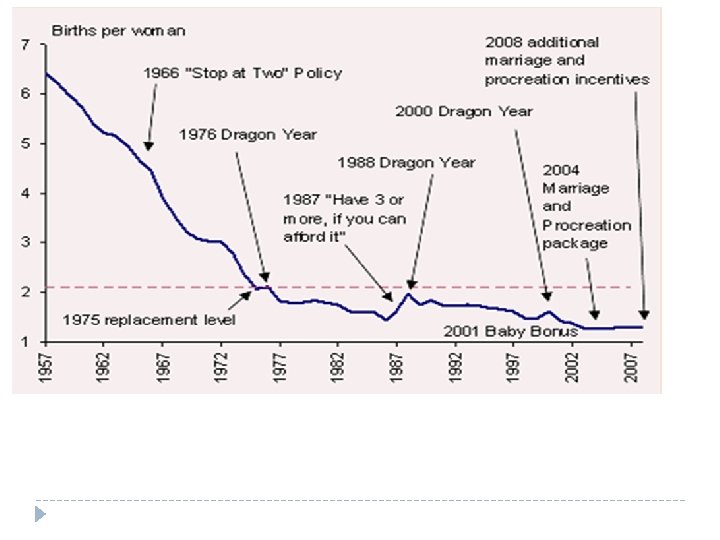 How did they solve it? � They introduced a pro-natalist policy to promote having babies. In 2001. � The slogan switched from ‘stop at two’ to ‘have three, if you can afford it’ � Their target was to increase the population by 40% over 40 years